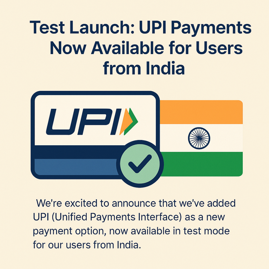 We’re excited to announce that we’ve added UPI (Unified Payments Interface) as a new payment option, now available in test mode for our users from India. With UPI, you can enjoy fast, secure, and